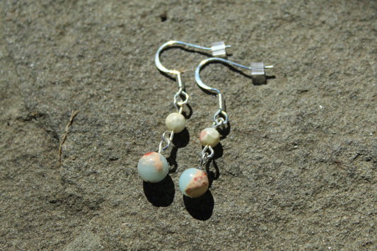 Silver Plated Picasso and Green Forest Jasper Drop Earrings