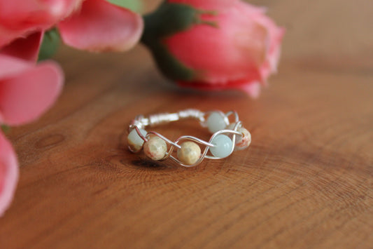 Lilac Lepidolite Quartz Wire Wrapped Ring
