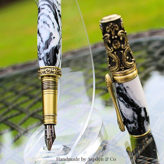 Handmade Black & Gold Marble Fountain Pen