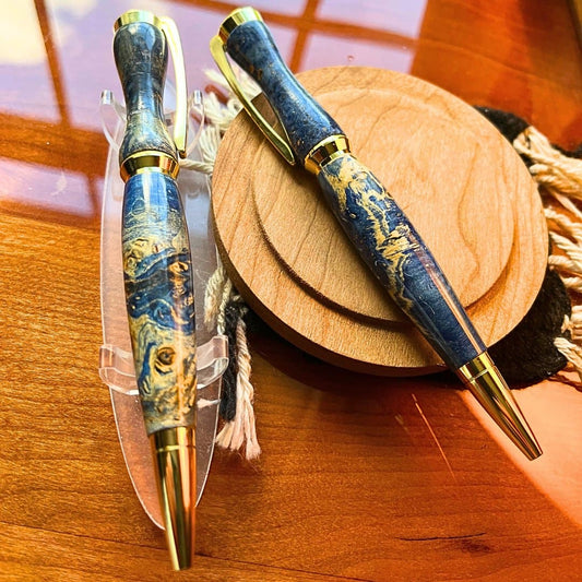 Handmade Baby Blue Elder Wood Ballpoint Pen With Gold Fittings